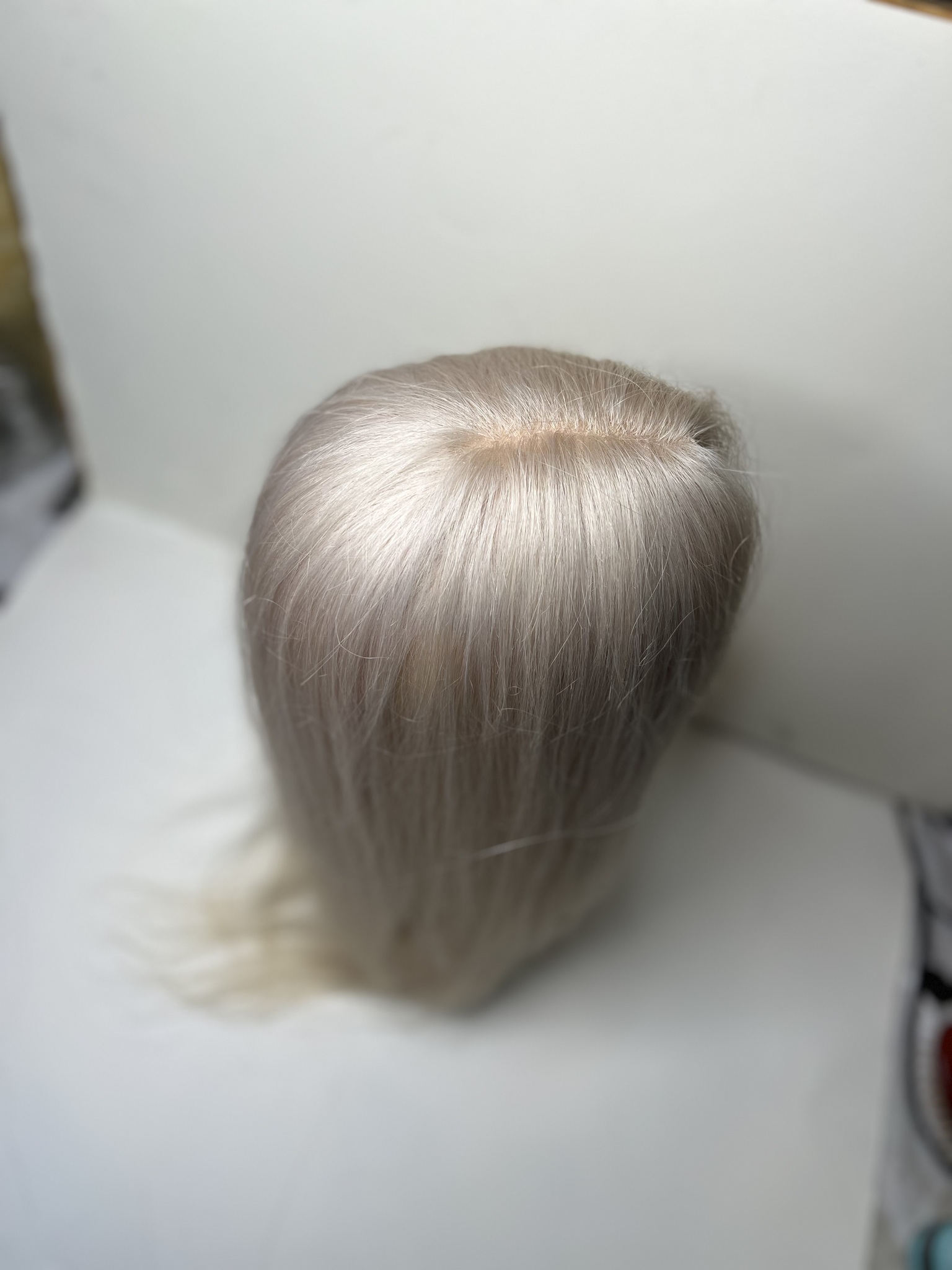 Накладка из натуральных славянских волос, 60 мм, густая, полный имитация кожи головы. Возможность выстричь челку и поменять пробор. Основание 13х14.
